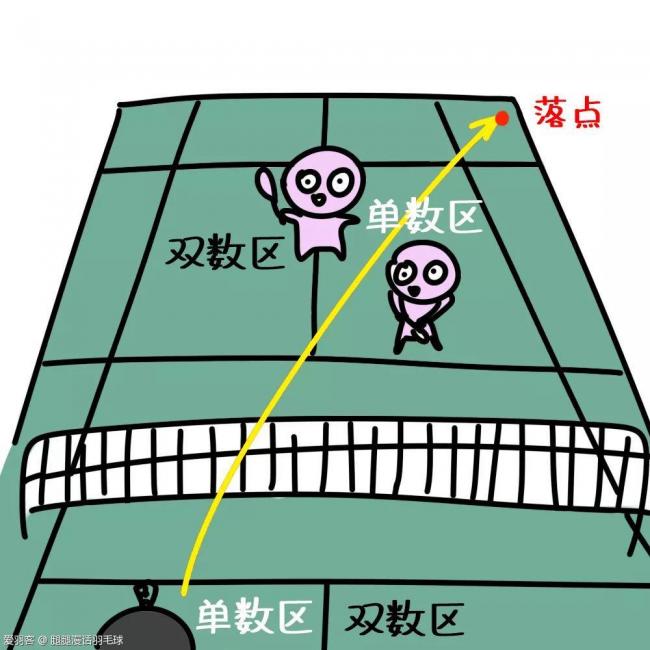 落点:目标落点为对方单数区后场底线与边线的交错方块区域