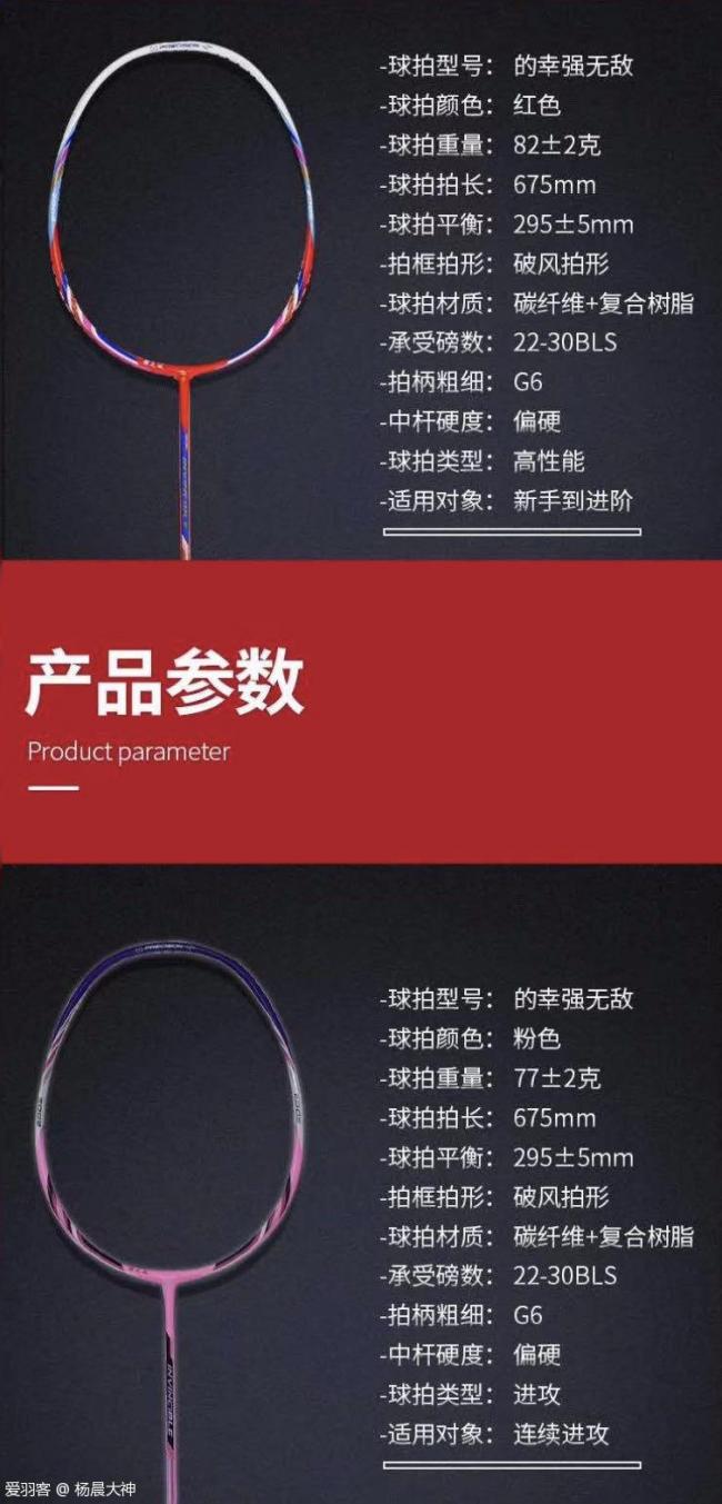 的幸强无敌,实力与颜值的一次完美邂逅。无论是4U红白蓝的三色混搭效果,还是5U粉色与紫色柔美调和,都显得绚烂夺目。从它的各项参数来看,这是一款比较容易上手的速度型球拍,整体强度和抗扭性非常出色,击球过程中的破风能力,更是让你挥洒自如,灵巧中杆,减震有力,让高球轻松、让对抗坚挺、让你实战绝对“强无敌”!