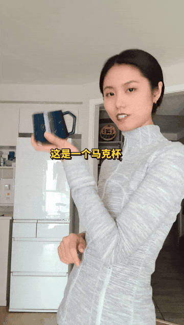 3、用马克杯来举例说明一下。手指穿过马克杯杯耳,手向上翘起,这个时候处于手腕外展的状态。当杯口朝上的时候我们保持手腕外展,进行一个提拉。“提拉-倒水”的这个动作其实就是小臂和手腕的内旋