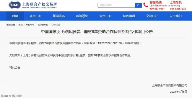 尤尼克斯签约中国羽毛球队8年