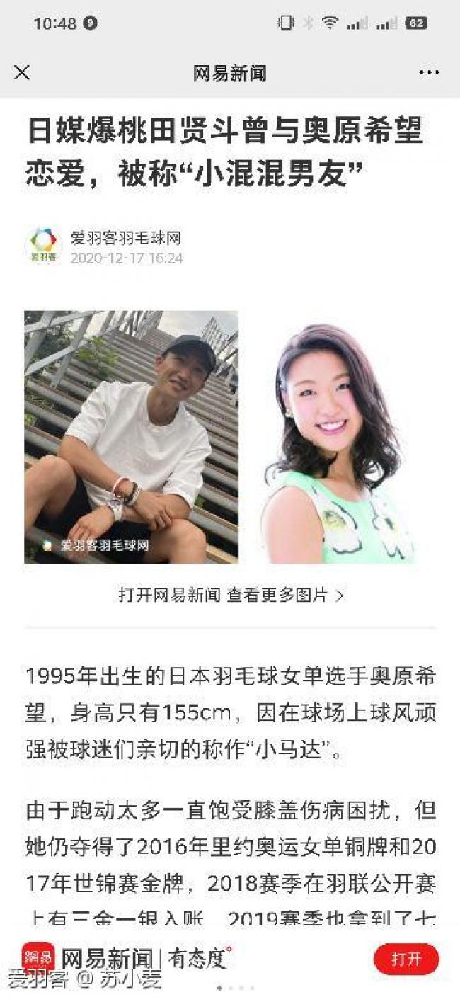 突然起了八卦之心,想看看桃田有什么绯闻。一搜,发现他和奥原希望还传过绯闻。