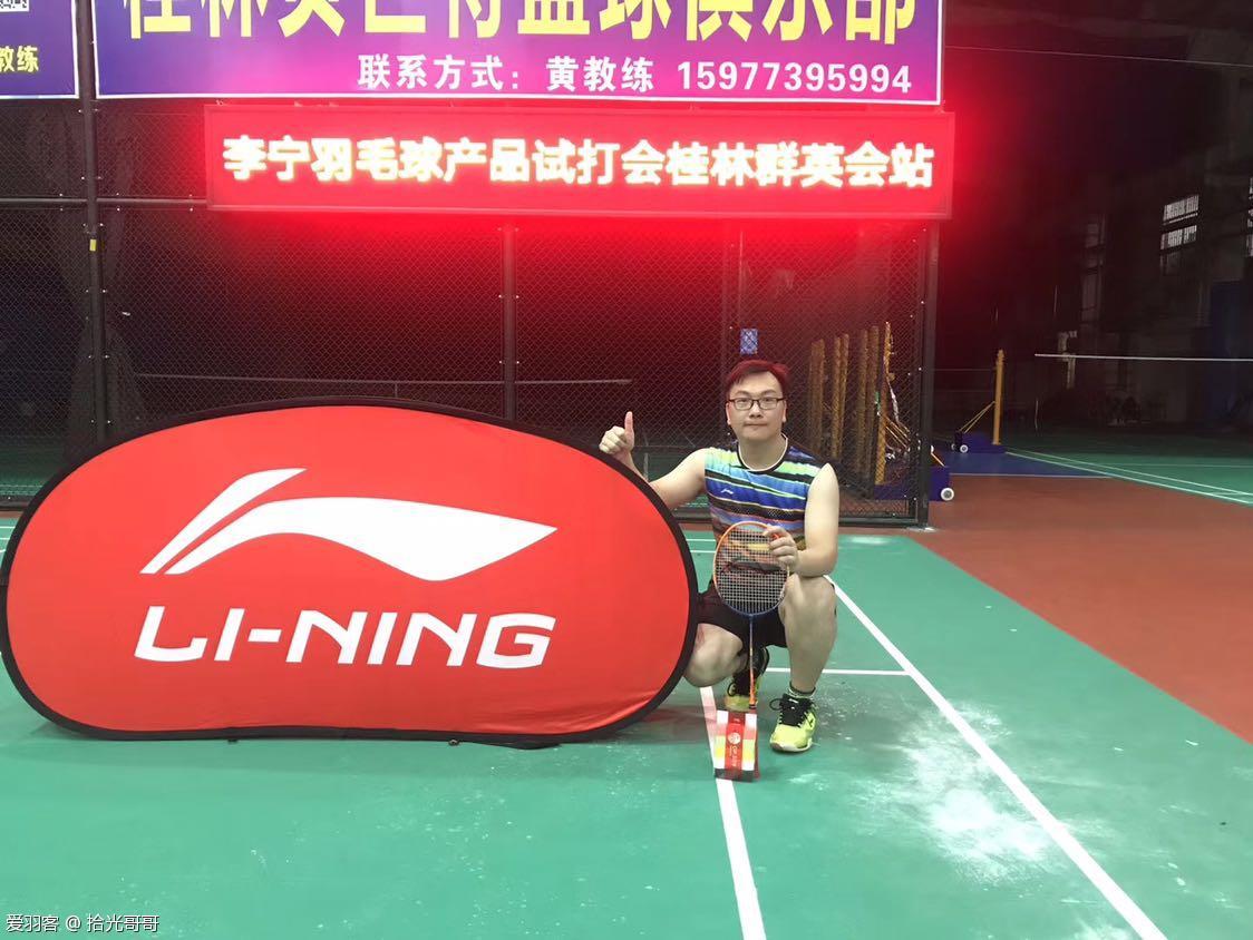 我好奇,过去询问道,你们不玩一下么?这时,朋友过来向我介绍,这是本次试打会的赞助商孙哥和冯姐,他们是夫妻,在桂林经营着一家李宁羽毛球用品店。