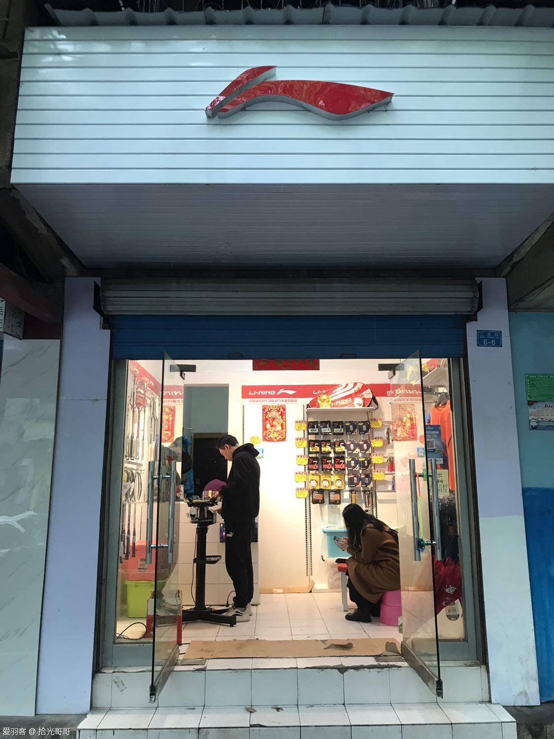 过了一段时间,我真的拿着球拍去孙哥和冯姐店里拉线。我按照他们给的地址到了指定位置,虽然是在二馆门口,但我还是找了两遍才找到。虽然他们是李宁羽毛球桂林这边的专营店,但店面很小,就跟孙哥和冯姐一样朴实无华,丝毫不像旁边的尤尼克斯店那样起眼。