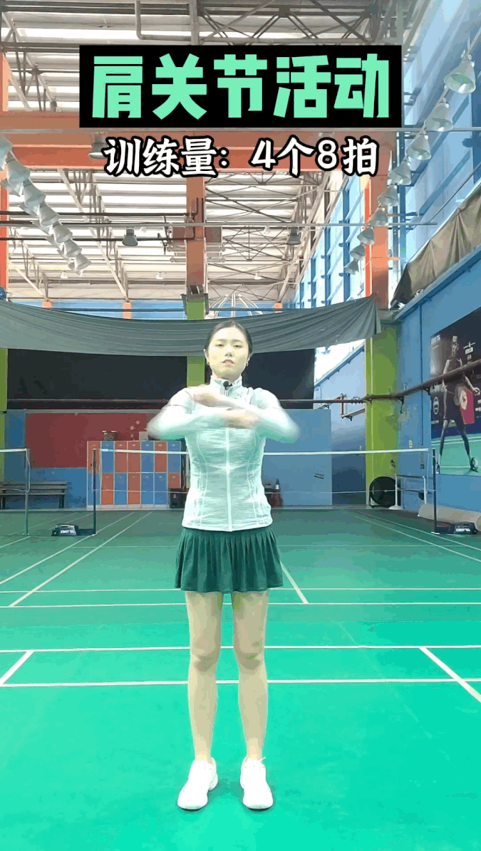 8、肩绕环活动。训练量:2个8拍