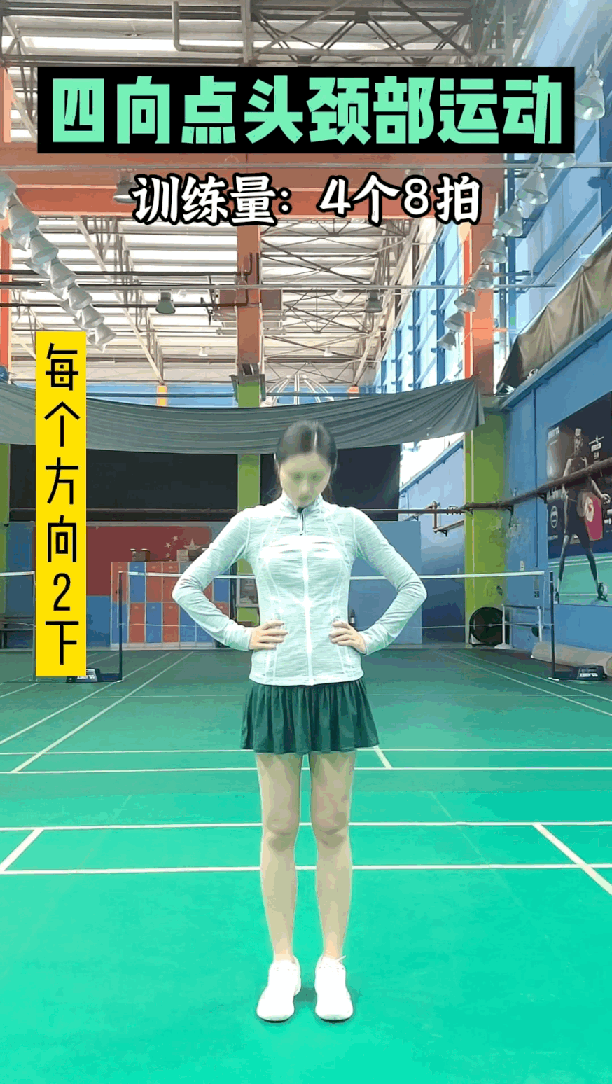 11、四向点头颈部运动。训练量:4个8拍