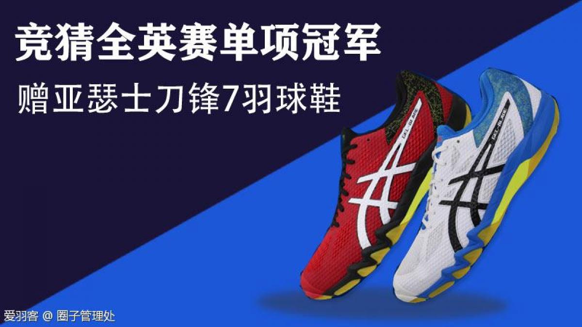 即日起参加爱羽客“竞猜全英公开赛冠军,赢取亚瑟士球鞋!”活动,即有机会赢取亚瑟士羽毛球鞋!