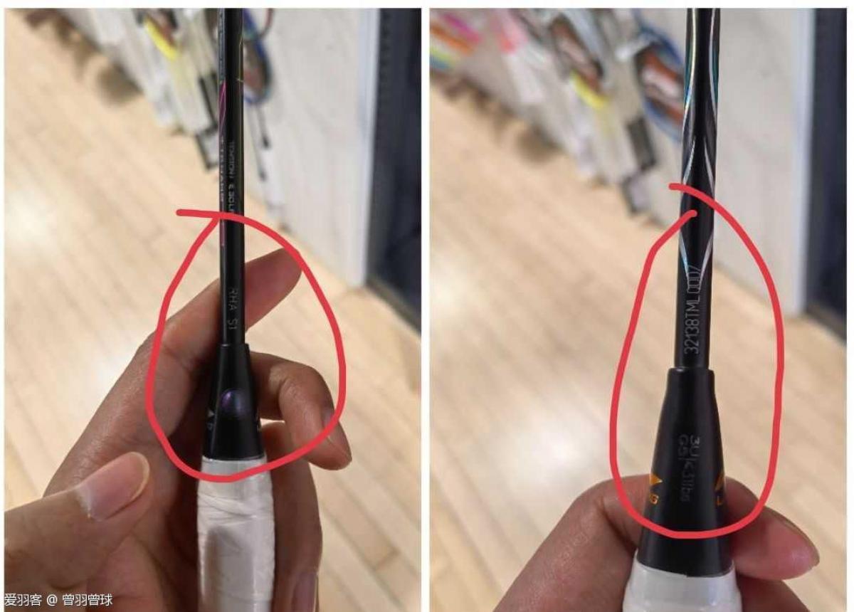 2:拍框顶部中间部分以前是小圆点,现在换成了尤尼克斯一样的三角形;