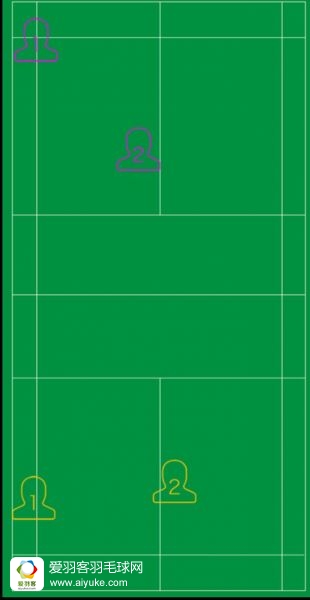 雄:接杀挡斜线网前和挡直线,正常谁接谁冲,同伴向左后区左移,防左后区反手位。
