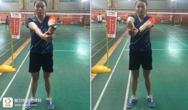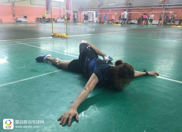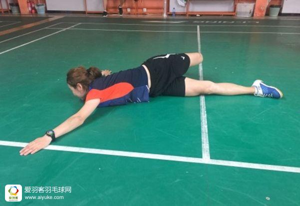 动作目的和感觉:比赛中两侧防守的转身,后场击球的转身发力,跳杀球时的背弓等,躯干腰部发挥着重要的作用。躯干部轻度拉伸感