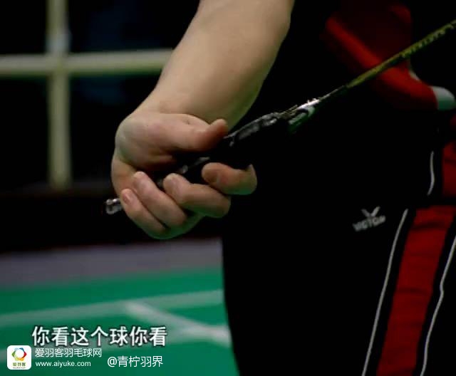 其实,很简单。像我这样,没有击球前,握拍应该是很放松的,只用后两个手指紧握拍柄,前三个手指放松,可以用到腕力。(前三指的作用,还有变换拍面的任务,用来劈球、吊球等)。