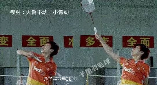 这个引拍动作非常重要,是发力的关键。如果没有抬肘的动作,从准备动作直接击高远球,发力不完全。没有“甩鞭子”的感觉,击球质量大大降低。