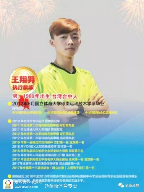 我们的执行教练:王翔羿。王教练在2017 年第十三届全****动会群众比赛中获得了羽毛球男子双打冠军。
