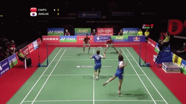 然而,双打可以做假动作的机会并不多,尤其是在水平相当高速对抗中,如果非要做假动作,通常会有两种情况: