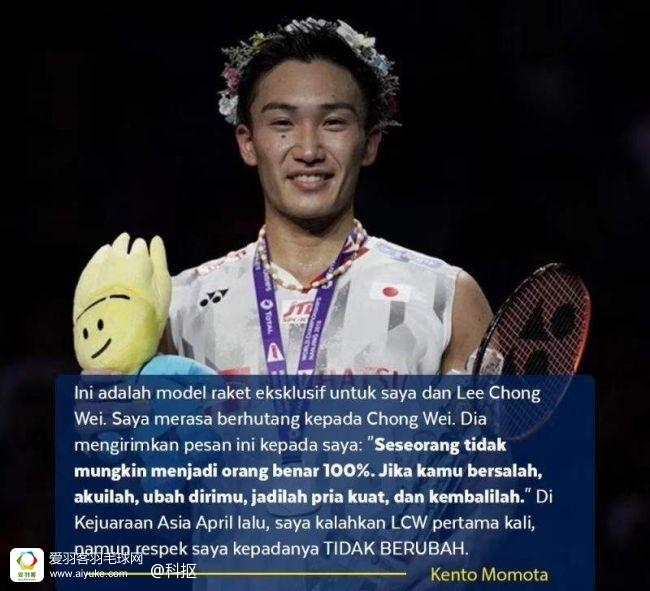 我带着球拍站上领奖台,希望宗伟能感受到他并不孤单,我们都与他一起。李宗伟很谦卑,他帮了我很多,很谢谢他。