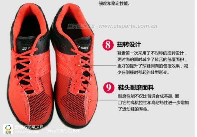 这双我认为是最好看的一双,由于宽楦设计也很合脚,与最后一双YY(另站购买)一起在上周于爱羽客商城购得,YY鞋打了一次,这双只是试穿,还没有实战。要说明的是,因为此站商城没有40.5码,所以先前在某东购买,但试穿明显偏小,与A960一样,吸取教训果断退货后,在此商城下单购买41码,合脚满意。看此文的网友如要买此鞋要注意鞋码,建议大一码购买。
