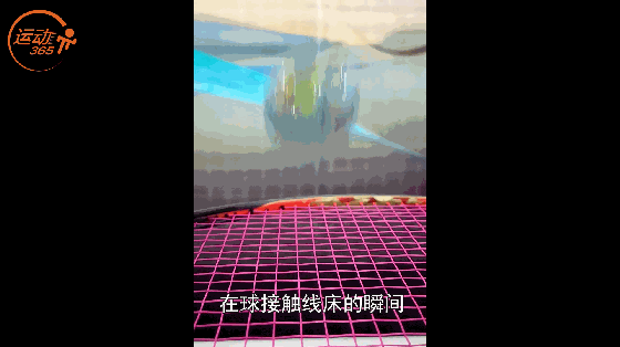 现在我们将一个球自由下落到线床上,可以看的出来在球接触线床的瞬间,椭圆形线孔的地方拍线会下沉的相当明显,普通的线孔拍线就会停在这个地方反弹能力会相对小很多,
