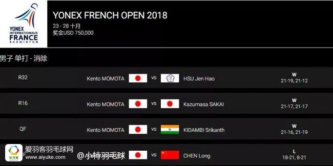 整个赛季,截止到目前为止,仅输6场。击败过桃田的选手包括谌龙、金廷、周天成、还有那位不知的选手。
