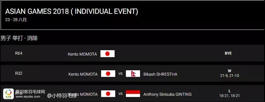 一位不知名的小哥。那时的桃田,还没有现在这么恐怖。好像是亚运会以后,信心大增,开启连胜模式