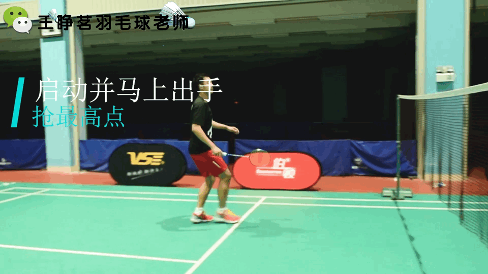 左脚发力选择侧身起跳,而不是转身起跳,如果转身起跳的话,可能时间来不及,我们应该要选择侧身一步起跳的方式,把球给下压,或者去选择击打的线路。