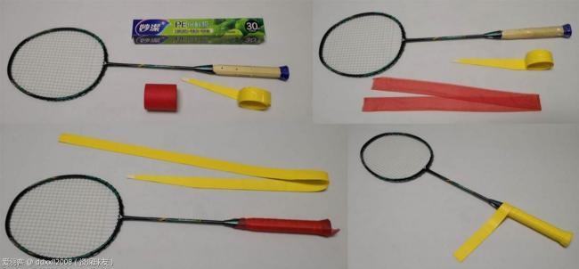 GR233手胶的长度将近112cm,这样的长度足够缠到拍椎位置。未去塑料膜之前的重量是6g。按照我个人的习惯,缠手胶之前先去底胶。因为本人手比较小,喜欢拍柄细一点。去玩底胶后,正好接着拍柄上残留的胶水,将保鲜膜裹上去。手汗多的人必须要注意保持拍柄干燥,否则时间久了拍柄会腐烂。之后上一层减震膜,将比较宽的减震膜对折后,大概就是手胶的宽度,按照手胶的缠法直接缠上去就好了。之后再缠上手胶,按照图片里的密度,缠完后手胶剩余长度不短。