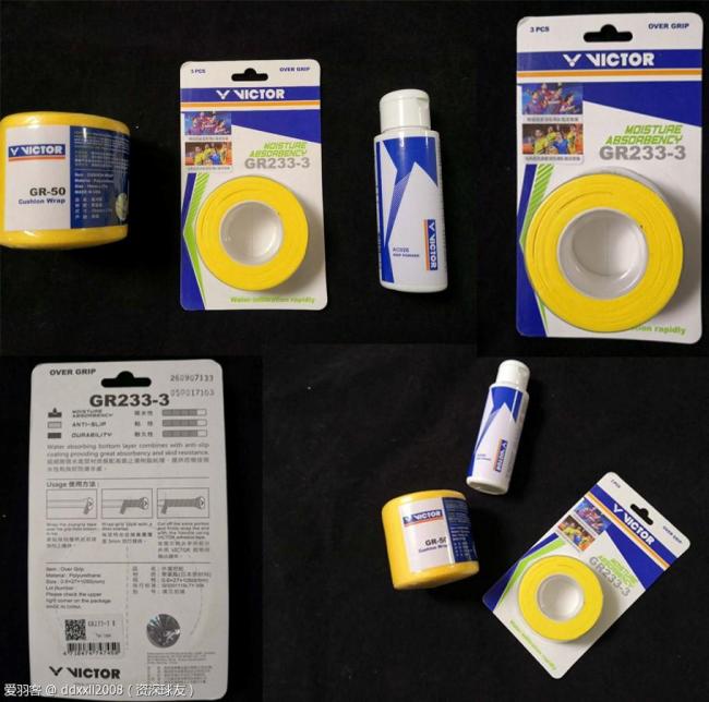 总的来说,如果手汗不是特别严重的话,VICTOR的GR233手胶的综合表现会更好,性价比略胜一筹。如果手汗特别多,拍柄被弄湿以后,GR233的表现也算不错。但是手汗太多确实影响打感,可以多备几把球拍更换使用。