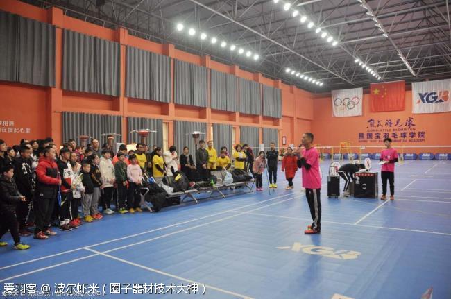 从一楼的训练场出来,我们上楼来到二楼的比赛场,来自世界各地的熊孩子已经在这里汇集,总共六片场地的空间 拿出一片场地的位置做了喝茶的茶座和聊天交流的长条桌椅,标准的五片场地,也拿出一片来做了 熊孩子回家的开幕仪式场地。余下四片场地作为比赛场地,比赛特意邀请了省羽协的国家级裁判领衔的裁判队伍,总共52位熊导的学生参加比赛,年纪最小的六岁半 年纪最大的和熊导同龄。其中有最早在泰国跟着熊导练球 现在已经成为专业队教练的一代学员,还有在广东 济宁追随熊导多次获得全国业余顶级赛事冠军的二代熊孩子,还有现在在南昌学院学球并担任教练也夺取过全国业余比赛冠军的三代门徒,以及其他各地来的一些学员包括学院体能总教练池培杰也亲自披挂上阵,大家济济一堂,省内媒体 江西日报 江西电视台等也专门派出记者前来采访,气氛热烈融洽,让人倍感亲切。