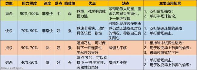 本期我们不讲具体的技术细节,因为这几种杀球,每一种要讲都是1篇大长文。今天,更想讲一讲几种杀球的分类和使用的具体场景。