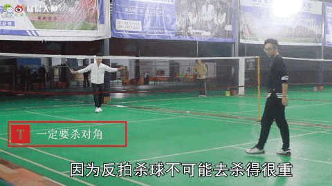 这个动作杀直线是没有意义的,因为反拍杀球不可能杀得很重,只能去杀得很快,所以说一定要去杀对角。