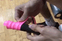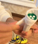 1、撕开手胶部分覆盖膜,顺时针方向开始缠绕。(龙骨胶起始部分是没有龙骨的)小罗平时习惯使用毛巾手胶,所以缠龙骨胶的时候也是一样的留出一部分在底盖外边用于包裹底盖。