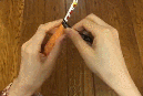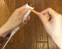 2、结尾处在心仪位置用剪刀剪出斜口后用封口胶进行固定,这种缠法必须使用封口胶。