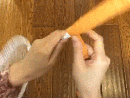 1、从大盘手胶上截取如图所示长度的毛巾手胶(约从手柄端头到倒数第四根横拍线)。大盘毛巾手胶需自行截取长度,可提前截好,也可以缠至最后再截取。