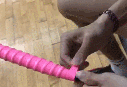 3、中间部分,边拉紧边缠绕,一直向上缠至手胶用完,不再次进行裁剪。