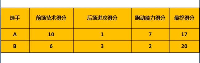 另外,值得注意的是,在这个公式内,前两者间是乘积关系(精细网前技术后场进攻能力),所以如果出现一个方面分值很低,就算另一个方面分值很高,也达不到顶尖水平。举个例子,比如A选手后场进攻能力为10,网前为1,跑动能力为7,那最终得分也只有17分。而B选手后场进攻能力为6,网前为3,跑动能力仅仅为2,最终得分为20分,B选手的水平就已经超过了A选手。