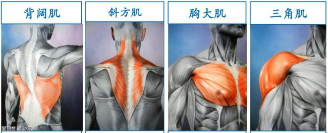大家都知道顶肘是整个挥拍中最关键的动作,而驱动肘部的真正力量就是肩部四大肌肉:背阔肌、斜方肌、胸肌、三角肌。