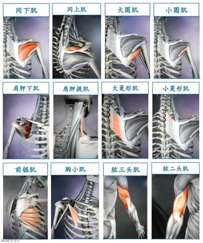 (注:当然还有一些小肌肉辅助作用,包括冈肌、圆肌、肩胛肌、菱形肌、前锯肌、肱肌等等)