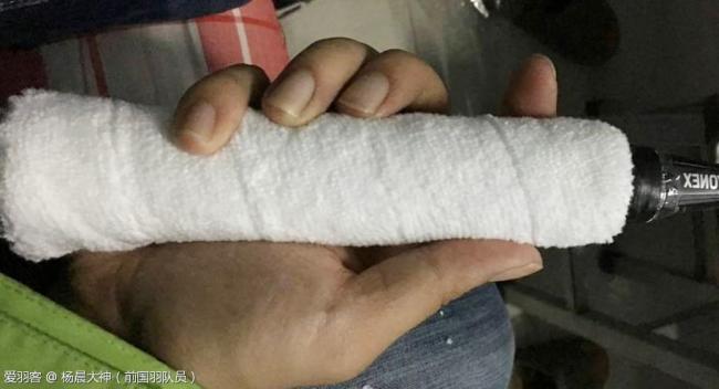 如果手掌不是特别大,手汗又很多的球友,可以把球拍的底胶撕掉,在木柄上直接缠毛巾胶就可以了,林丹就是这样缠的。