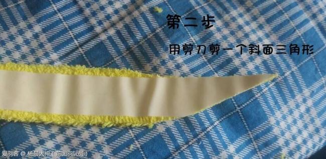 2.要把毛巾胶起头的位置用剪子剪一个斜面三角形。