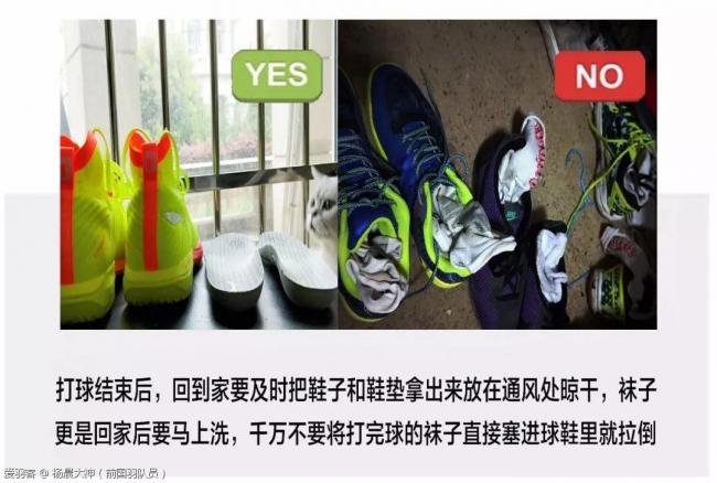 打球结束后,回到家要及时把鞋子和鞋垫拿出来放在通风处晾干,袜子更是回家后要马上洗,千万不要将打完球的袜子直接塞进球鞋里就拉倒,把球鞋随便放在闭塞的空间里,很容易滋生细菌不说,而且长时间下去那个味道真的是臭的不要不要的!