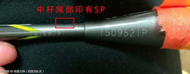 SP HK 代表着中国香港地区销售的球拍,英文Hong kong的缩写,中杆尾端上印有SP,锥盖印有SP盾形logo