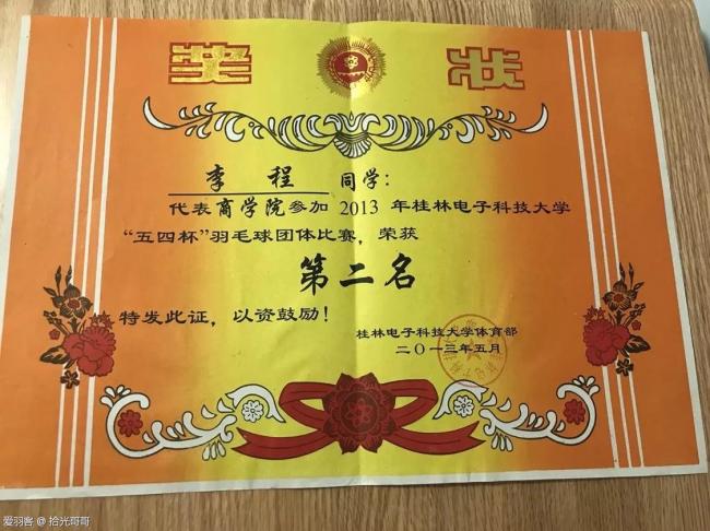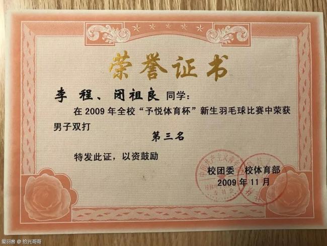 入学两个月后,在球队学长的帮助下,我和后来一起四年的搭档参加了学校专门为新生举办的“新生杯”羽毛球赛,并一路过关斩将,取得了季军。第二年的4月底,便在学长的带领下,第一次参加了学校的“五四杯”。然而在这一年,因为球队人员的青黄不接,我们小组赛都没能出线。也正是因为这样,我们即将毕业去国外读研的队长,在输掉他最后一场男单比赛的时候,失声痛哭。