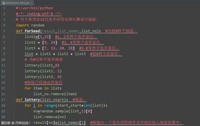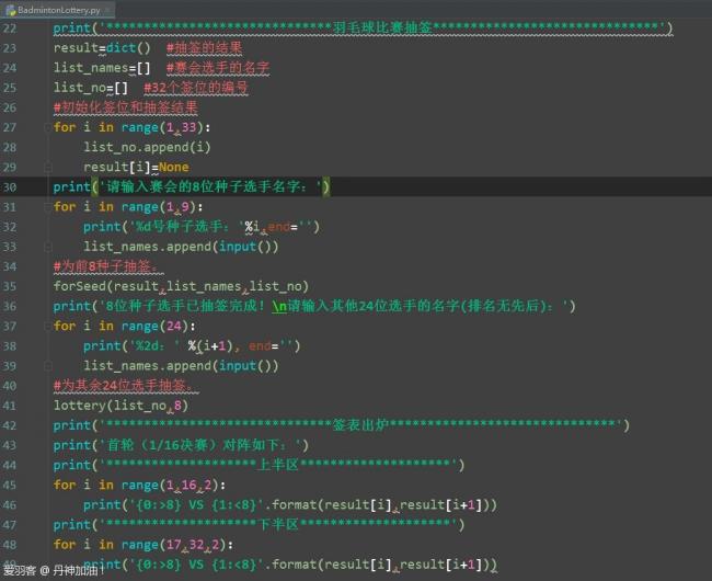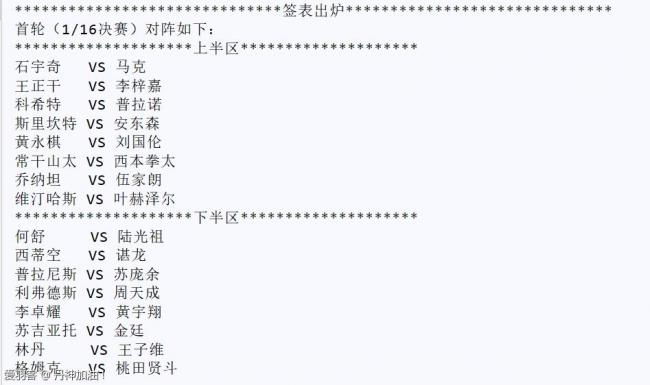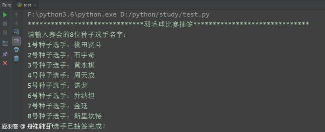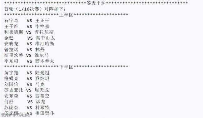 恰逢最近正在看python的基础语法,萌生了用python模拟男单抽签的想法(当然是丑爆了的控制台输入输出,emmm,大神勿喷)。