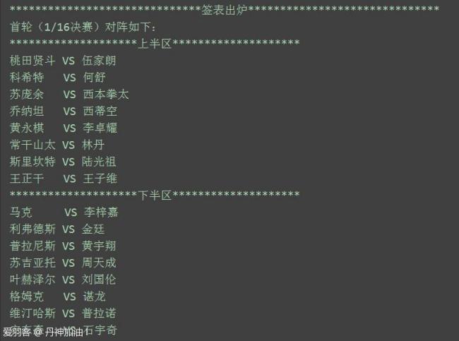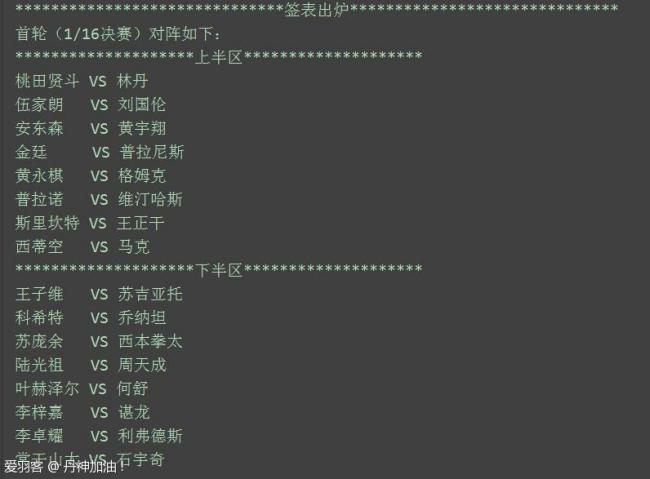 最后YY一张日本公开赛的抽签结果(根据爱羽客给的签表,丹神次轮又要打影帝,妈耶,emmm):