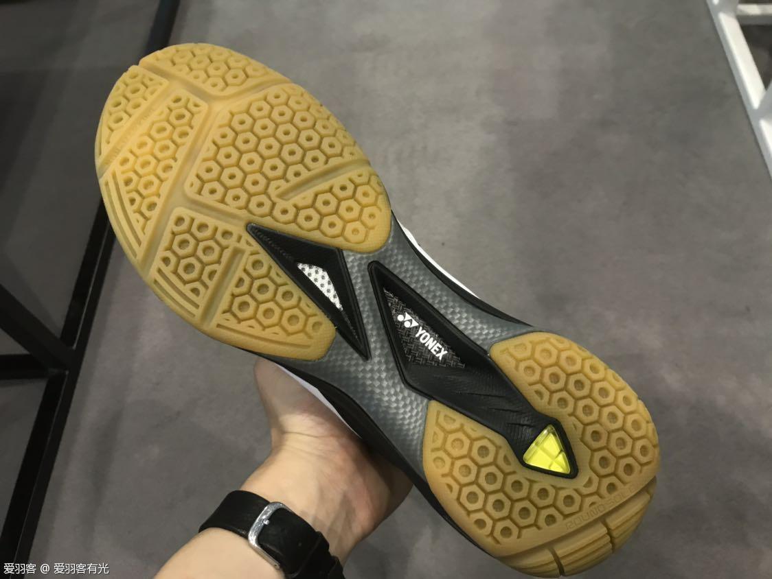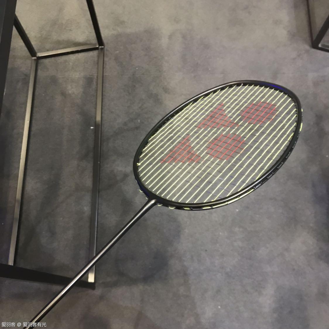 这次球拍的新品比较神秘,展会上的这只球拍是一只没有任何涂装的小黑拍,官方解释说,球拍的设计还暂时处于保密阶段,整体风格和疾光系列主打的轻量化一致,从试打来看,重量较轻,大概规格会是4u、5u。