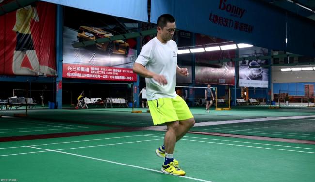 单脚跳的训练方式比较类似于分拆训练法,用单脚来支撑身体进行向前、后、左、右、上的跳跃训练,使得单脚能力能够超常发展。通过对单一下肢的针对性训练,得到1+12的目的。而羽毛球场上很多蹬跨动作都需要单脚能力做支撑,定期进行单脚训练,场上移动能力会得到非常有效的加强。