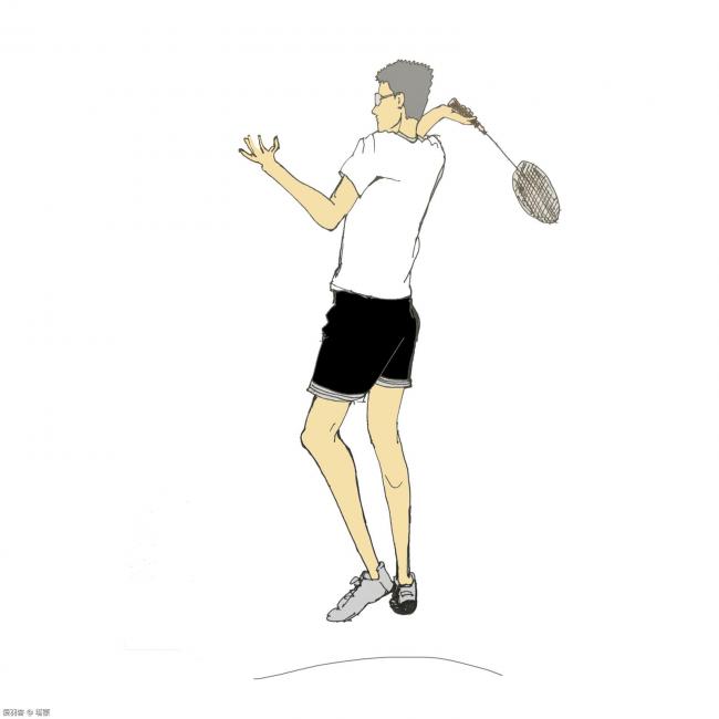 这个跳挥的图吧,我是照着教练的示范动作画的,因为我自己的跳挥 奇——丑——无——比!为了不误导各位羽毛球爱好者,我就不拿自己的动作出来祸害大家了。