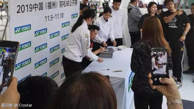 今日一早在酒店吃过早餐后,遇到了阿山伍家朗杜鹏宇吴柳莹李文珊金廷等等。当大家都在和伍家朗合影的时候我去和杜鹏宇合影了,杜鹏宇还问我知道他是谁吗,我说杜鹏宇啊,他说合吧。然后还问了另外一位姐姐是从哪来的。然后遇到了日本队,有人找桃田合影了,送了小礼物,桃田才签了两个名。