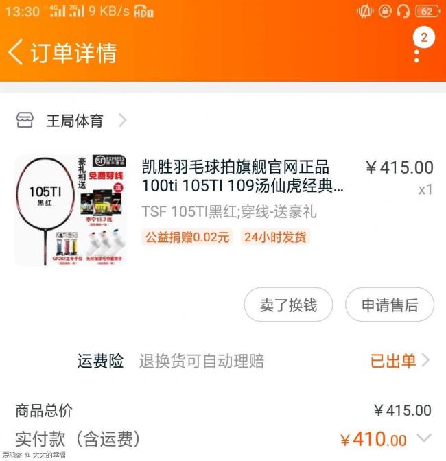 凯胜羽毛球拍,TSF全新105TI 颜色黑红,送人说不喜欢,原价410购入,一次没用,想给人一个惊喜,结果翻车了,过了退货时间,所以只能二手出了,400包邮出,真心想买可以微微小刀