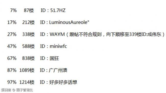 按照游戏规则总有效楼层的7%、17%、27%、47%、67%、87%、97%为中奖楼层,名单如下: