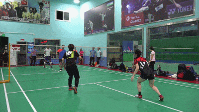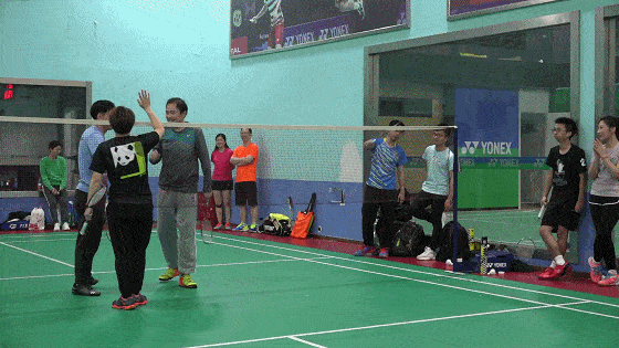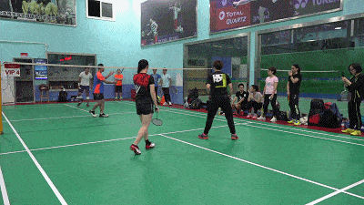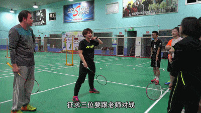 邀请三组和教练进行实战对打的练习。比赛是11分制