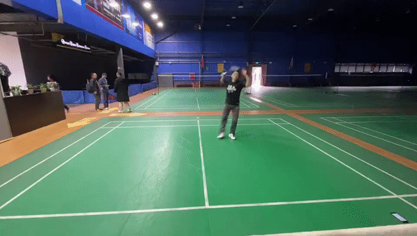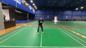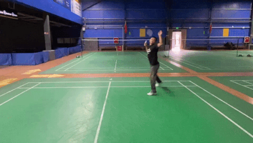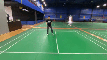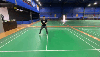 走位解说:在接吊挑出斜线后场高球后,我们需要回动到中场位置准备,这是因为斜线挑球致使我们的直线威胁转换到了另一侧,所以我们需要回到中场准备下一拍。